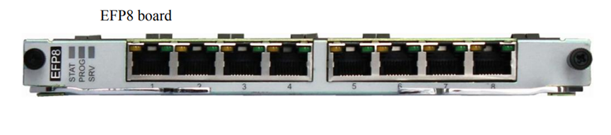 EFP8 is an 8-port FE EoPDH processing board. The EFP board connects to the packet through the GE bridging port. We will discuss its applications in the following.