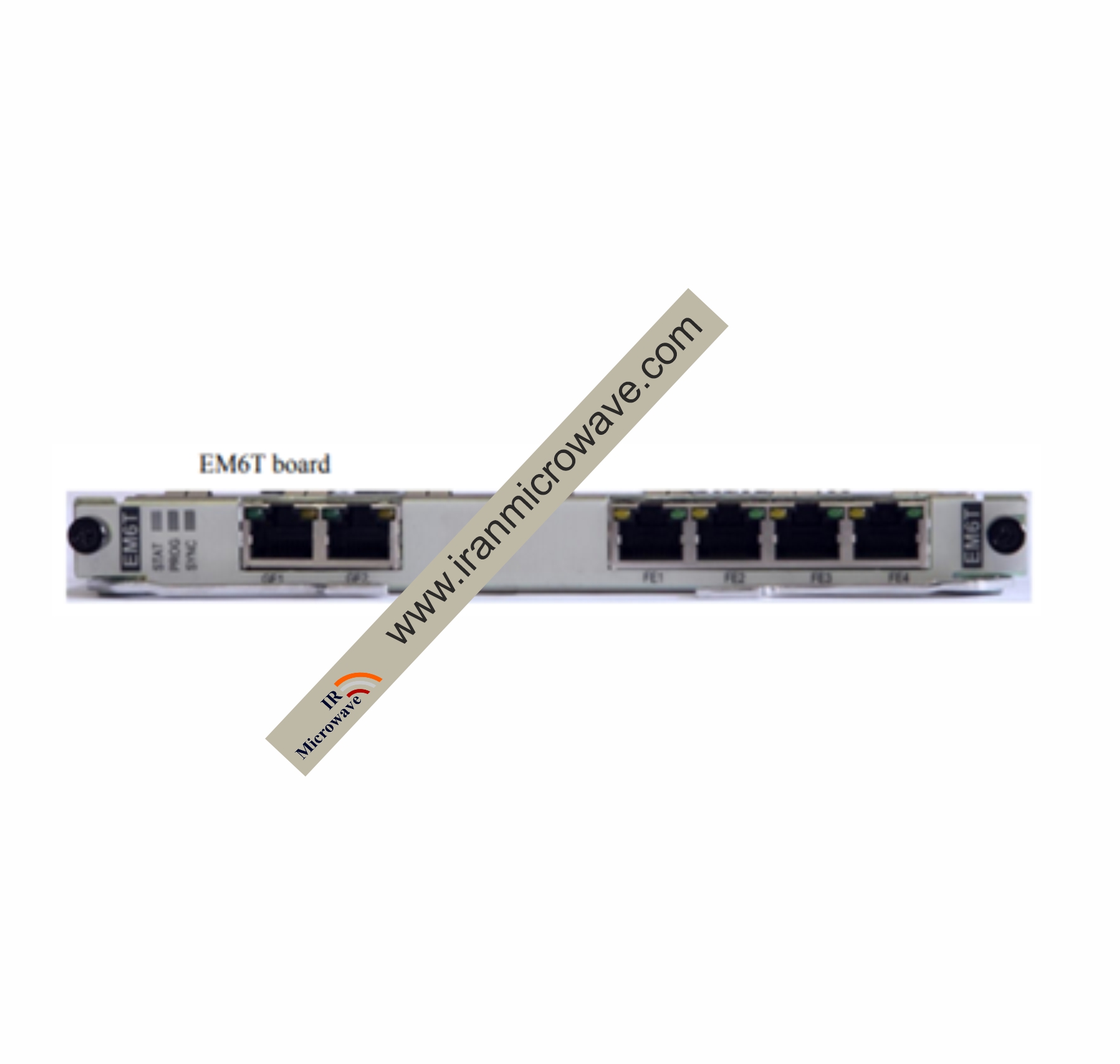 EM6 board variants (EM6 F, EM6A, EM6D, EM6FA, EM6T, EMS6) can be used to receive and transmit GE/FE services or carry multi-protocol layer services (MPLS) tunnels.